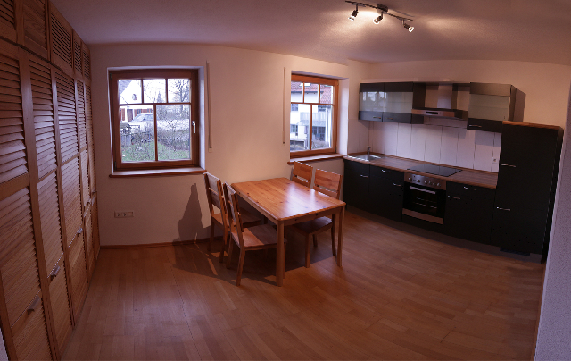 Im 1.OG 1 Schlaf-/Arbeits-Zimmer und 1 großzügige Wohn-Küche mit neuwertiger Einbauküche, Bad und Balkon